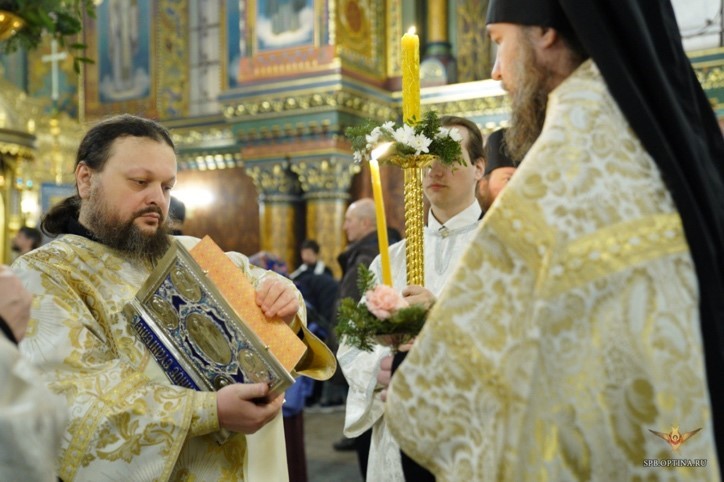 После вечернего богослужения в понедельник совершается молебен Богородице о Святой Руси и воинах и Лития