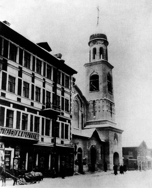 В 1894 г. на Выборгской стороне в Петербурге на участке, пожертвованном потомственным почетным гражданином Ф.П. Кручининым, было открыто подворье Кашинского Сретенского монастыря. Сначала планировалось построить часовню, которая и была освящена 3 апреля 1894 г. в честь святителя Николая Чудотворца в память спасения Цесаревича Николая Александровича при покушении на него в японском городе Отсу. На освящение собралась "такая масса народа, что движение по проспекту не только конное, но и пешее было прекращено".