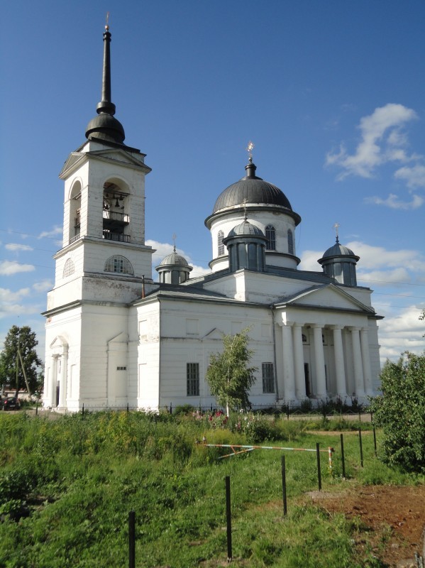 1826 г. – церковь каменная, с каменной колокольней, построена тщанием князя Грузинского и прихожан. Престолов было три: главный, в летнем храме – во имя Богоявления Господня, освящен в 1846 г; в правом теплом приделе – во имя Рождества Пресвятой Богородицы, освящен в 1828 г; в левом – во имя Святителя и Чудотворца Николая, освящен в 1830 году. В 1902 году построены трапезная и каменная церковная ограда с железными решетками и дверями. Доходы церкви были кружечные и от земли.