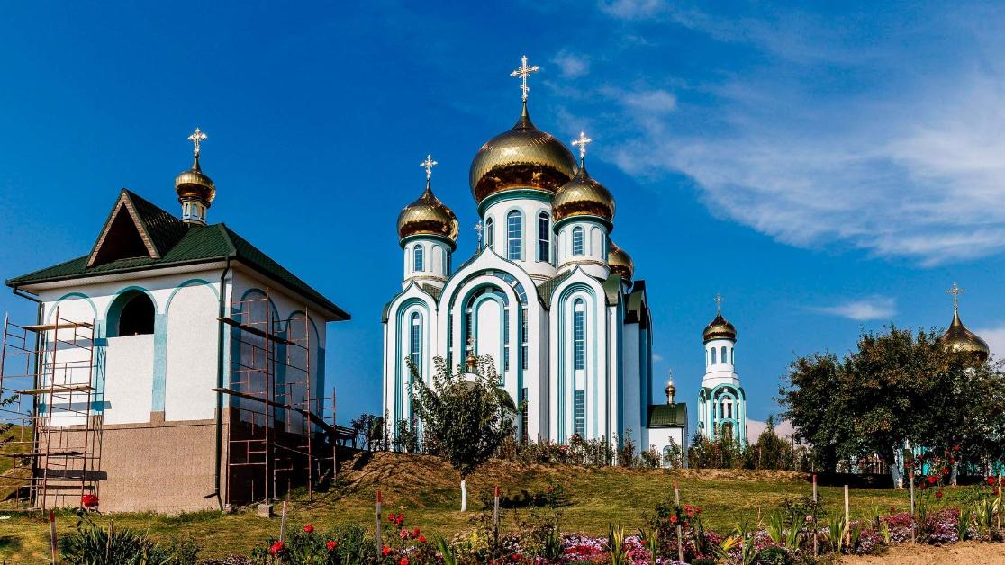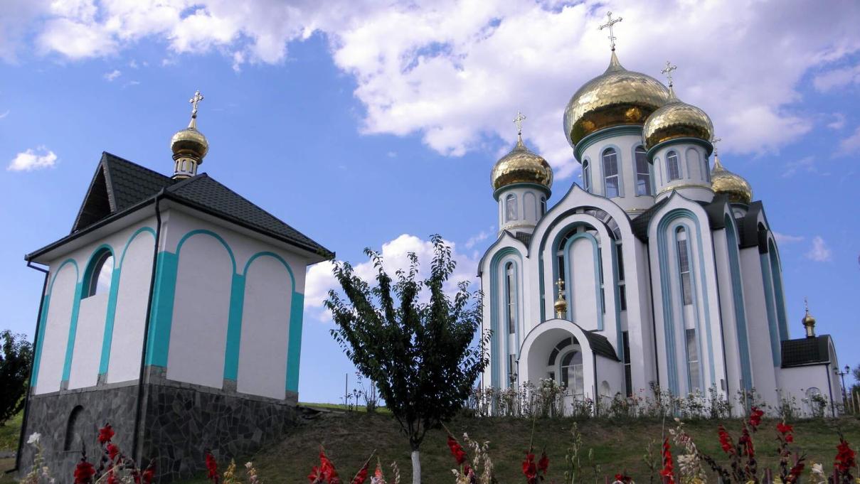 Обитель образована на месте храма в честь иконы Божией Матери «Всех скорбящих Радость».