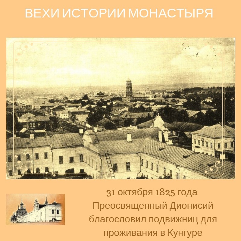 Так, для полного уединения сестры обратились с просьбой к Преосвященному Дионисию, епископу Пермскому, о дозволении переселится им в г. Кунгур. Дозволение было получено и в 1825 году и они переселись в небольшой каменный дом при Иоанно — Предтеченский кладбищенской церкви г. Кунгура. Скромность, трудолюбие, безукоризненная чистота жизни подвижниц обратили на них внимание кунгурских жителей.