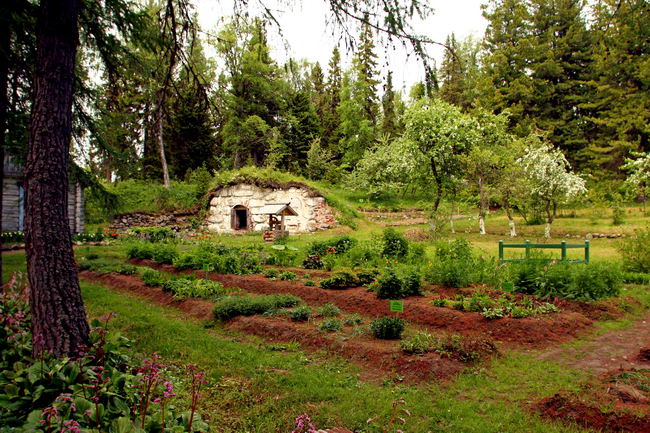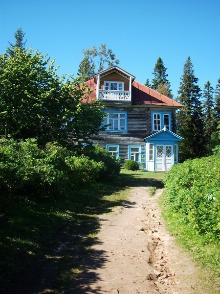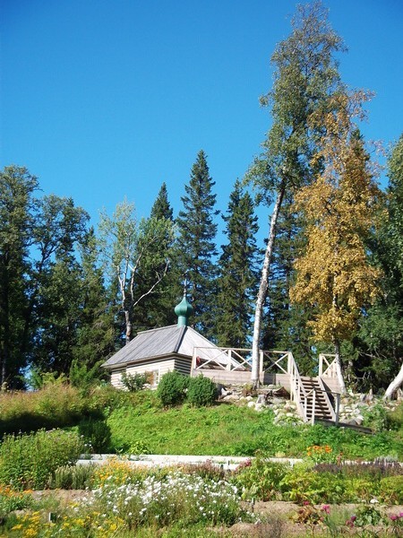 «Это прелестный уголок, затерянный среди лесистых гор в зеленой котловине. Мы взошли на балкон, устроенный на кровле часовни. Отсюда открывается пейзаж, так и просящийся на полотно. Прямо перед нами, одни выше других, вздымались гребни поросших соснами гор и за ними - синевато-туманные полосы таких же далей. Все навевает на душу мирное спокойствие… Изредка взгляд встречал небольшую полянку. На одной ясно рисовался силуэт отдыхавшего оленя… Не хотелось верить, что мы на Крайнем Севере. И воздух, и небо, и земля - все напоминало юг Швейцарии… Садовник-монах из крестьян предложил нам посмотреть оранжереи и парники. Тут росли арбузы, дыни, огурцы и персики. Разумеется, все это в парниках… Оранжереи с цветами прелестны. В распределении клумб обнаруживается вкус и знание дела».