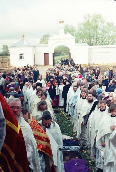 Знаменательное событие произошло 1 ноября 1994 года, когда в монастырь по указу Патриарха Московского и Всея Руси Алексия II для возрождения обители прибыли две монахини: Варнава и Ардалиона из Толгского монастыря под Ярославлем.