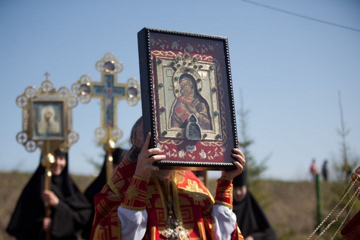 Множество народа отправилось в день сретения 23 июня (6 июля по новому стилю) Владимирской иконы Божией Матери в дом Ивана Жолнина, а оттуда к месту обретения образа, случившегося 1 мая (14 мая по новому стилю). При этом происходили многие чудеса. Люди слышали невидимый голос на том месте, где провидением Божиим должна быть основана обитель для монахов.