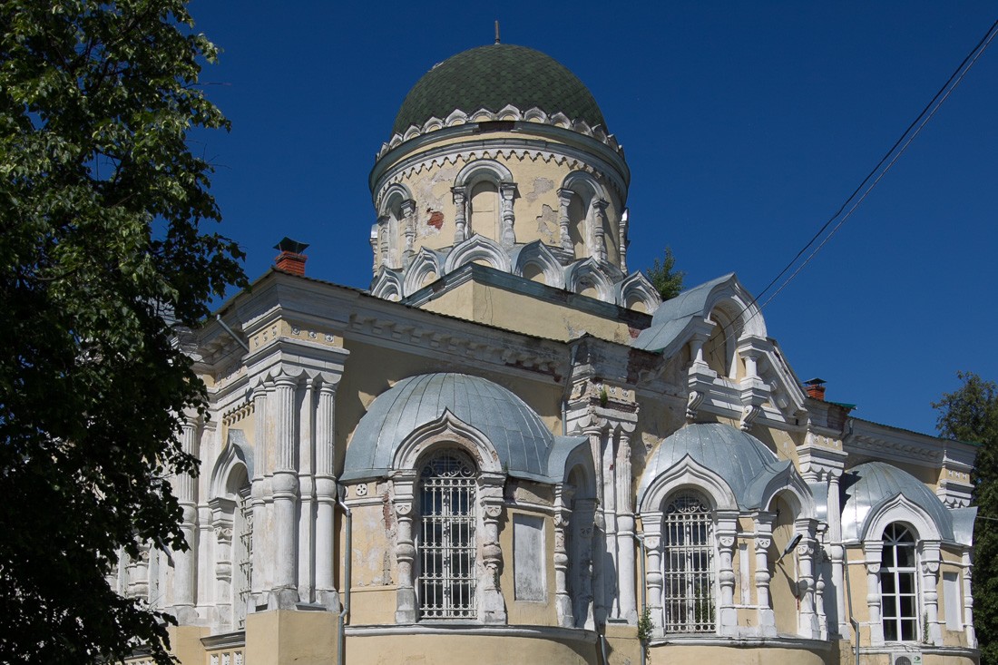 Венчается храм мощным пятиглавием. Высота основного центрального барабана с полусферическим куполом равна высоте четверика, что несколько утяжеляет храм. Над центральным куполом — еще один световой барабан, на котором уже установлена главка с крестом. Остальные четыре главы имеют основания в виде восьмериков, поставленных в два яруса.