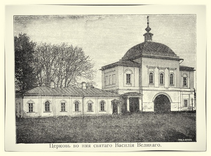 Церковь во имя святителя Василия Великого, надвратная, каменная, одноглавая, была заложена весной и окончена осенью 1840 года.
