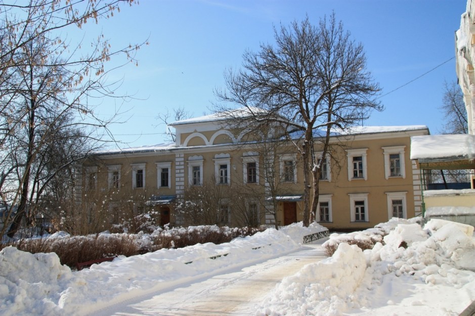 С двух сторон к храму примыкали двухэтажные каменные келейные корпуса. По окончании строительства правый корпус стал настоятельским, в левом была размещена монастырская больница для больной и престарелой братии, аптека, а позднее располагался лазарет для раненых и больных воинов Русско-японской войны (работал с 1905 по 1907 год).