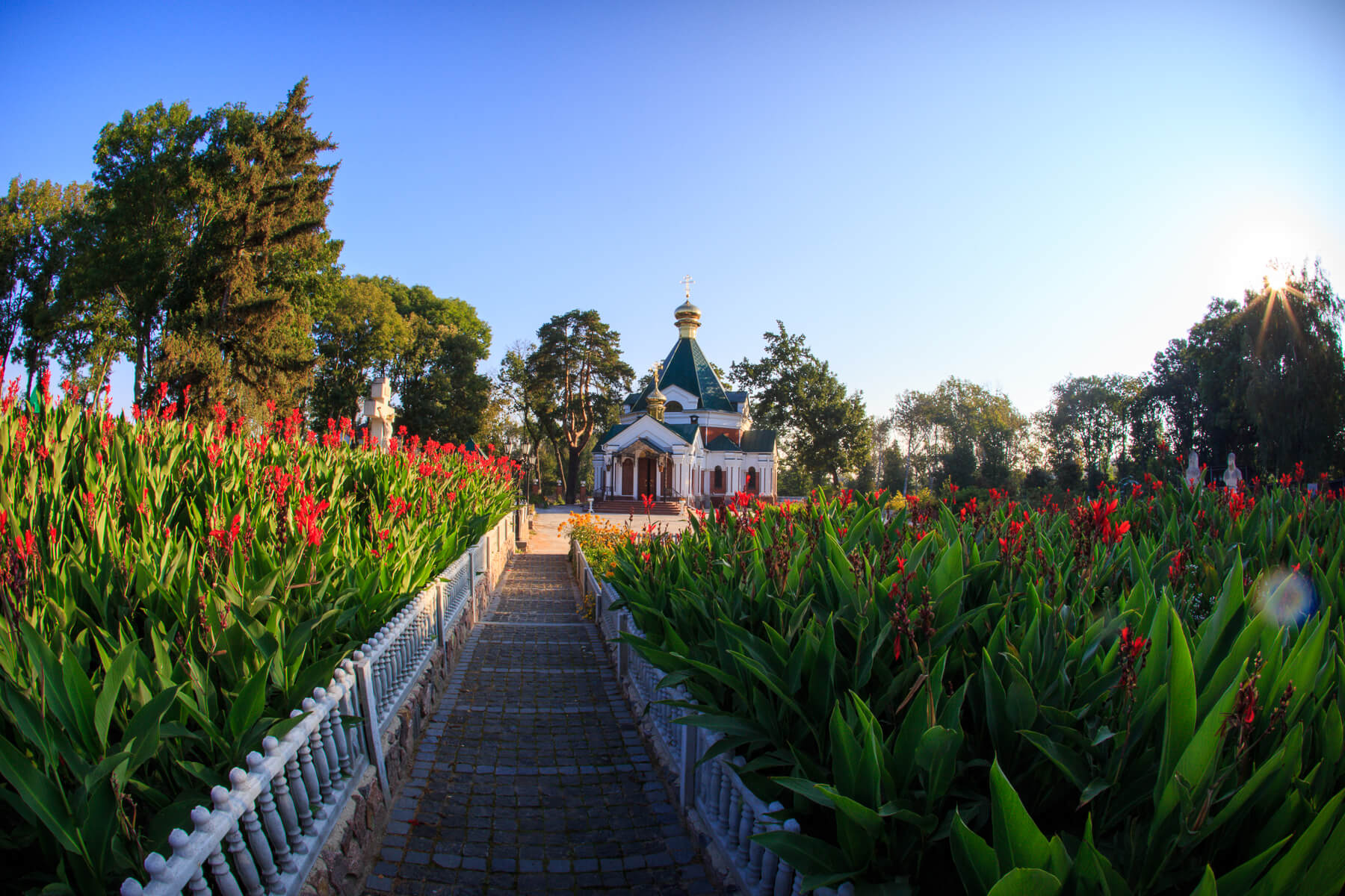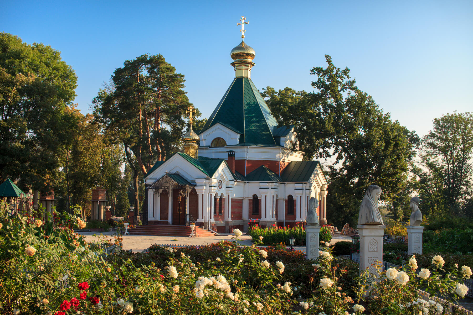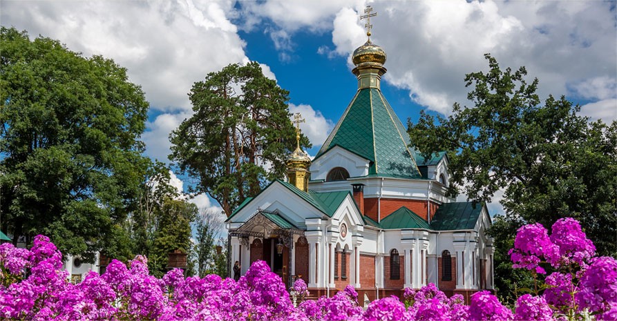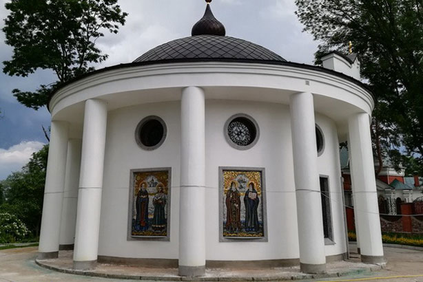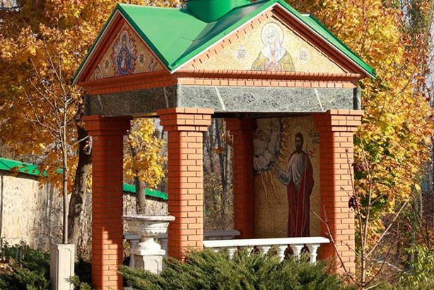 Два храма, облицованные природным светлым камнем, являются собирательным образом двух славянских обителей – сербского монастыря Хиландар и болгарского Зограф. А третий Удел Божией Матери – Киево-Печерскую Лавру – олицетворяет храм-ротонда в честь «Всех преподобных отцев Печерских». Рядом с этим храмом находится монастырский некрополь, строгие надгробные памятники-кресты украшают могилы почивших братий, «…под сенью праведных могил их мирно церковь приютила».