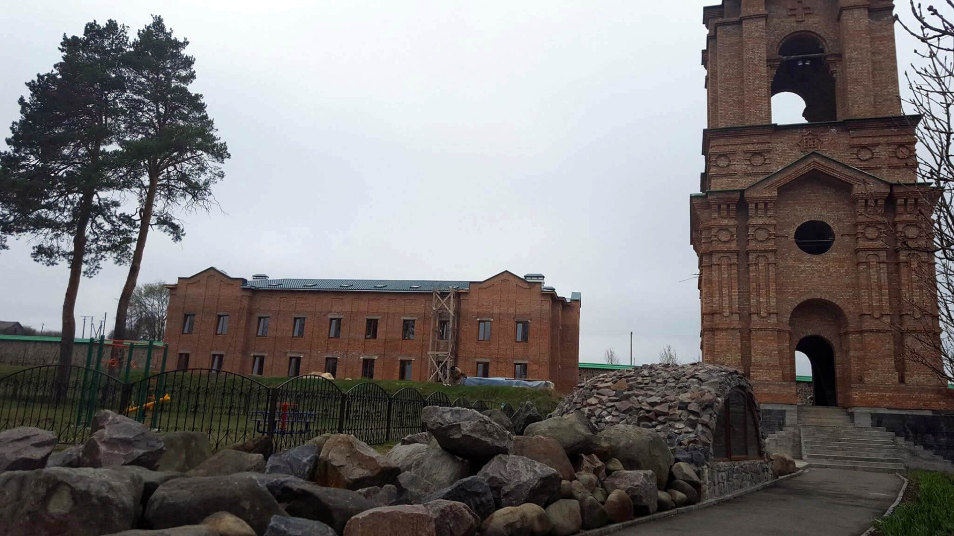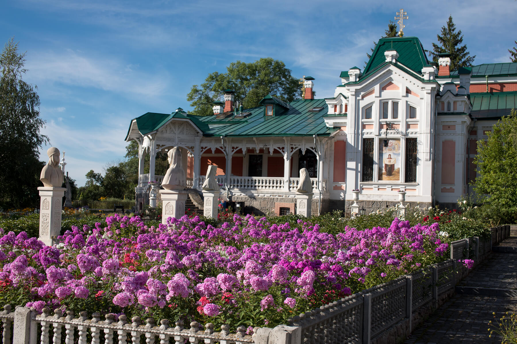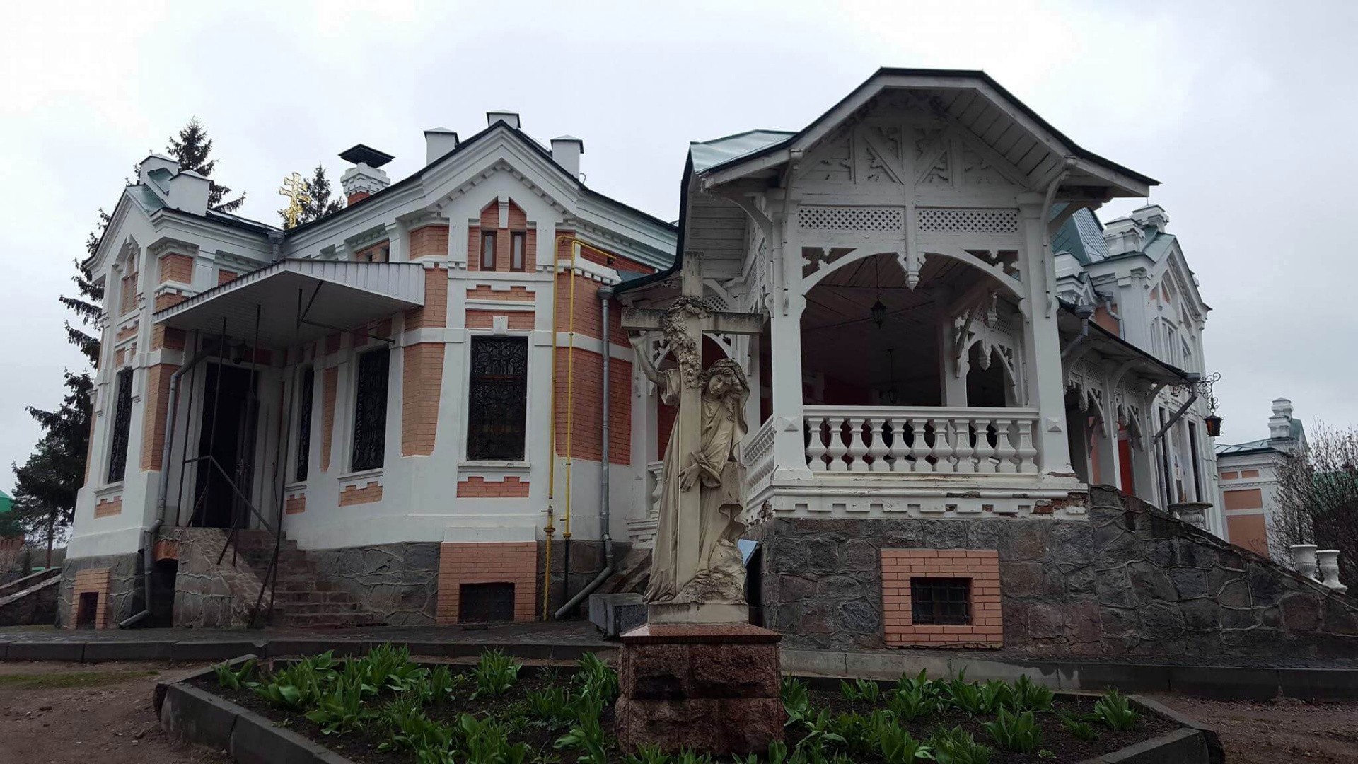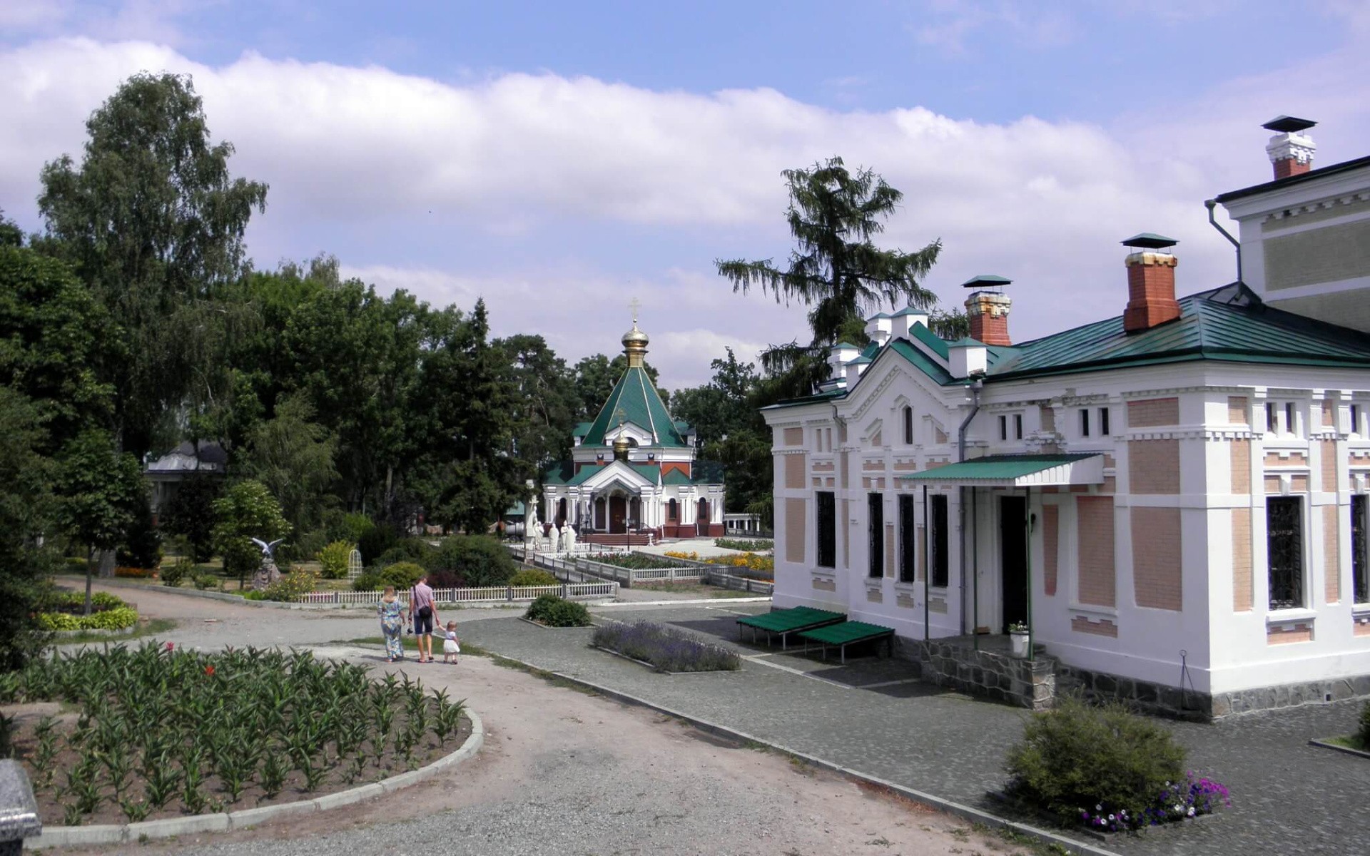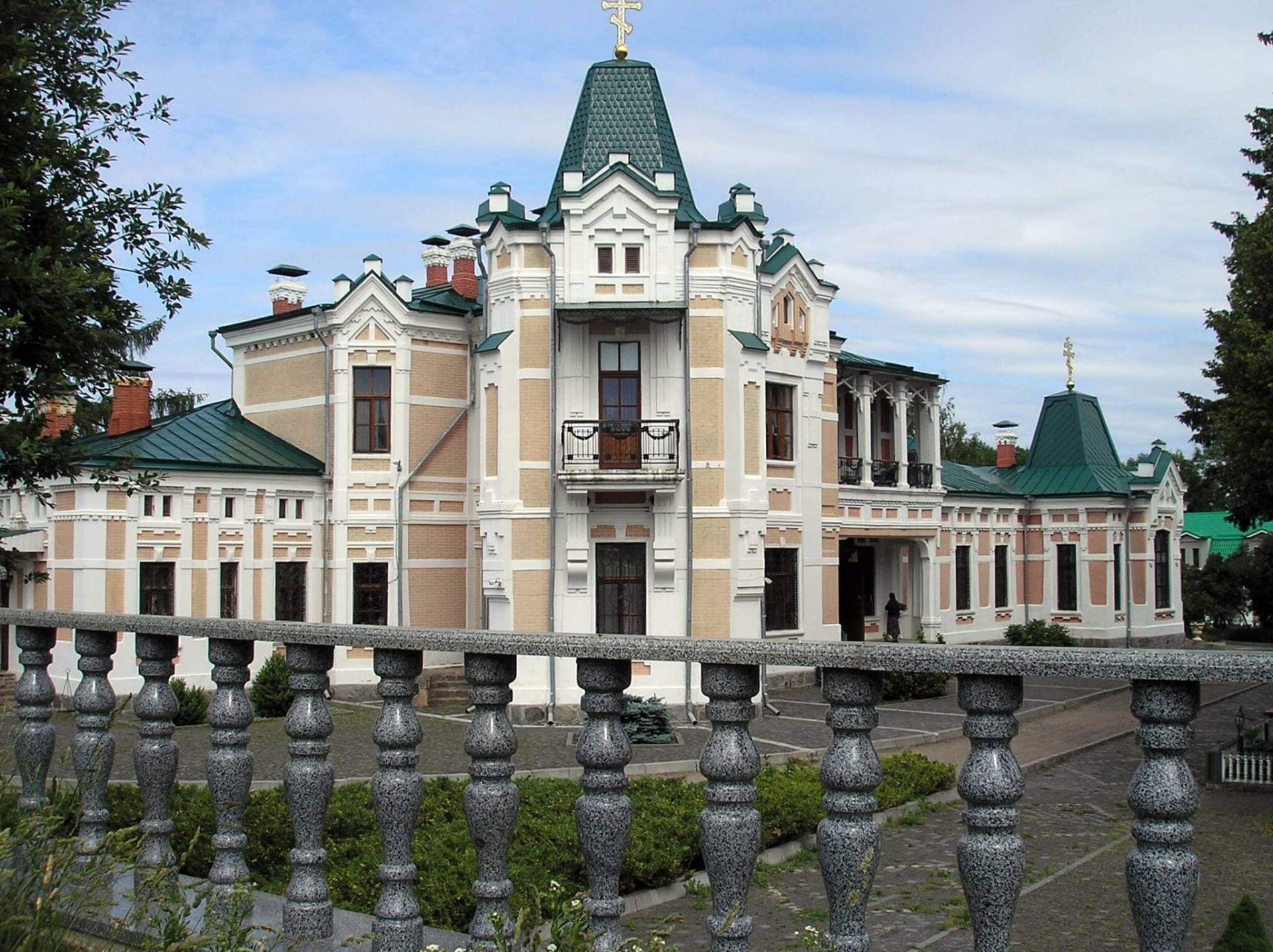Аллея приводит к главному зданию, бывшему усадебному дому дворян Хоецких, памятнику архитектуры стиля модерн начала ХХ ст. В усадебном доме в советское время 66 лет находилась школа, а после ее отселения, дом долгое время стоял в запустении и постепенно разрушался. Монастырь заботливо восстановил памятник архитектуры, и в одном из залов первого этажа 18 ноября 2005 г. был освящен первый храм обители в честь прпмц. Великой княгини Елисаветы. Главными святынями домового храма являются иконы Божией Матери «Всех скорбящих радость» (XIX в.) и «Богородица Грузинская».