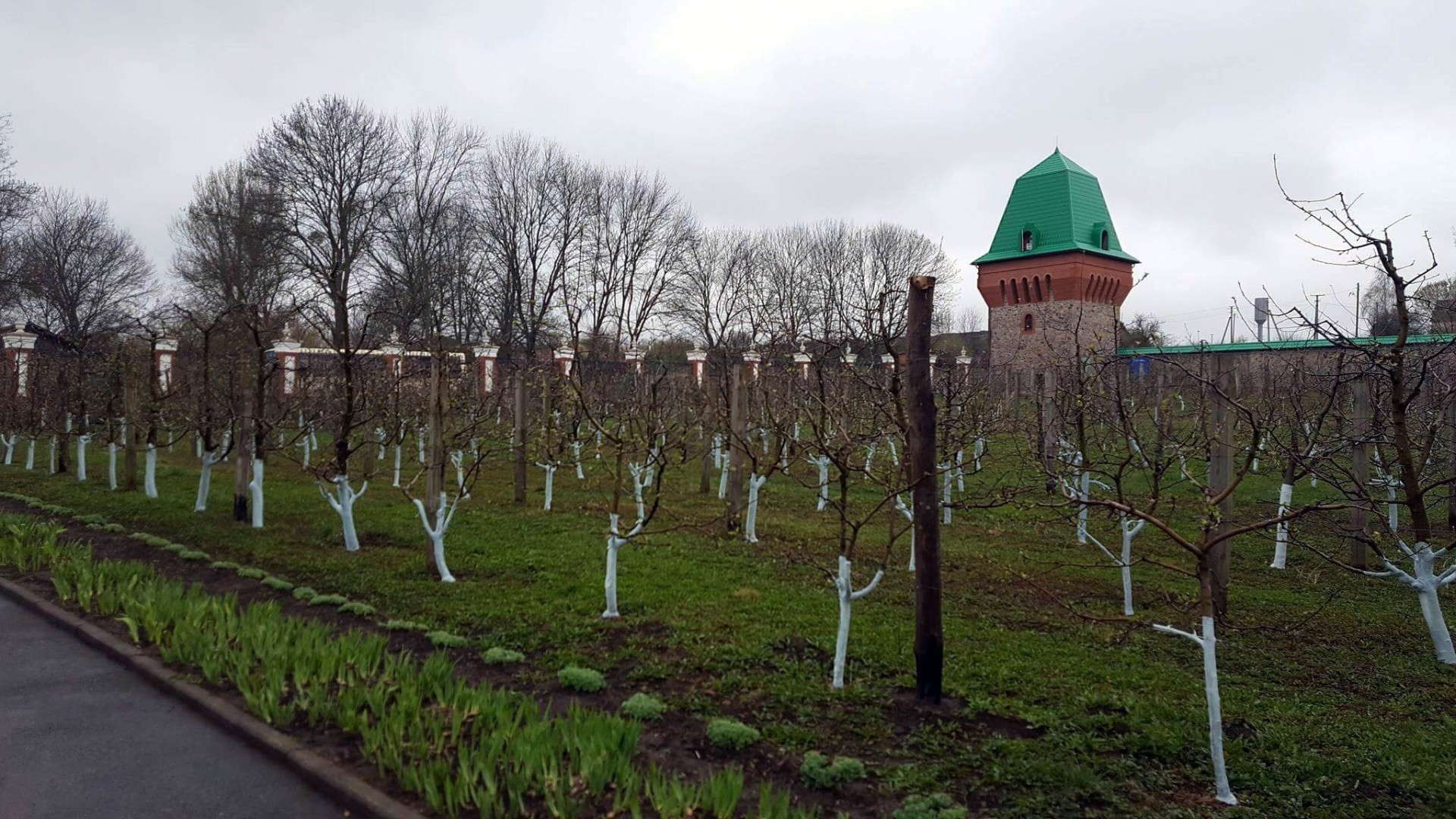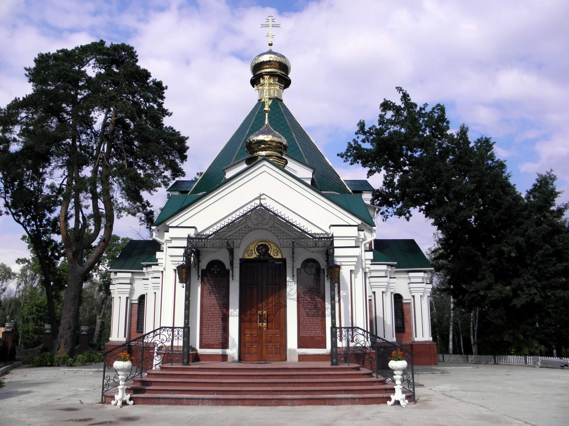 От ворот начинается центральная аллея, которая разделяет западную часть ландшафтного парка на две части. Справа от аллеи, на некотором расстоянии друг от друга размещены часовни в честь св. Анастасии Узорешительницы и в честь св. Матроны Московской, мозаичное изображение которой внутри храма окружено образами святых цариц, княгинь и блаженных стариц.