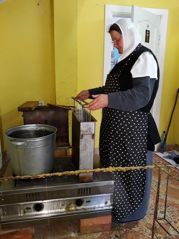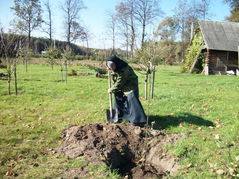 После трапезы сестры расходятся на послушания. Старшие по возрасту монахини читают псалтирь, помянники, молятся о болящих, путешествующих, страждущих, которые обращаются в монастырь за молитвенной помощью. А у молодых свои послушания. Обширное хозяйство скита требует неусыпного попечения и нелегких трудов, которые разделяют с сестрами благочестивые паломники. Сестры трудятся в трапезной, в храме, на клумбах, на огороде. Есть иконописная мастерская, где сестры пишут иконы для своего храма и на заказ. В швейной мастерской шьют монашескую одежду. Есть в скиту и своя свечная мастерская, где изготавливаются свечи для Богослужения. На небольшом расстоянии от основных построек скита находится коровник. Коровье молоко перерабатывается на молочной кухне, где изготавливается творог, сметана. Есть и своя небольшая пасека, и по милости Божьей на Великий пост сестры обеспечены медом. Послушание одной из старших сестер – зажигать на могилах лампадки, ставить цветы.