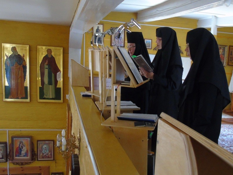 Трудовой день насельниц скита начинается с 7 часов утра, когда каждая сестра спешит в храм на монашеское правило. Здесь читаются утренние молитвы, полунощница, три канона – Иисусу Сладчайшему, Божией Матери и Ангелу-Хранителю, акафист Иисусу Сладчайшему. По четвергам, субботам и воскресеньям служится Божественная литургия.