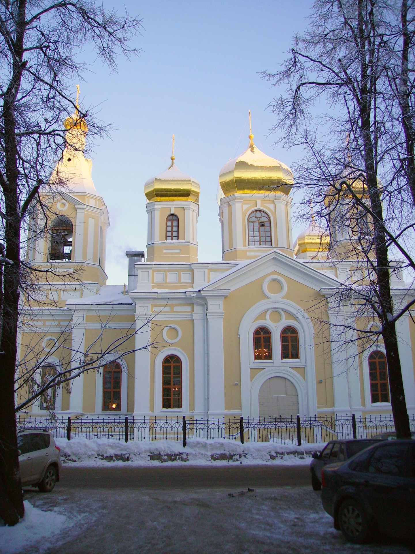 Храм каменный, трехпрестольный: