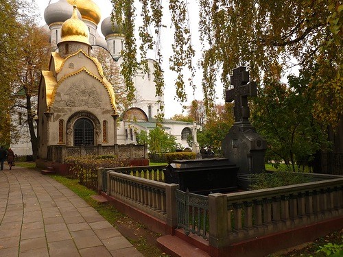 В 1727 г. в Новодевичьем монастыре поселилась царица-инокиня Елена, в миру — Евдокия Федоровна Лопухина, первая супруга Петра I, постриженная по его приказу ещё в 1699 г. и содержавшаяся сначала в Суздальском Покровском монастыре, а с 1725 г. — в Шлиссельбургской крепости. Лопухина мирно скончалась в 1731 г. и была погребена в южном нефе Смоленского собора. Здесь же находятся гробницы опальных царевен: Софии (†1704), Евдокии (†1712) и Екатерины (†1718).
