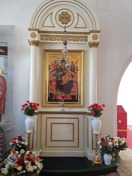 В храме хранится икона Божией Матери, список (копия), исполненный монахами Ватопедского монастыря Святой Горы Афон с находящейся там всемирно известной чудотворной иконы Божией Матери «Всецарица». Список был торжественно доставлен в марте 2016 г. на подворье, в храм Всемилостивого Спаса. Образ Божией Матери «Всецарица» почитается верующими как чудотворный и известен многочисленными исцелениями от онкологических заболеваний.