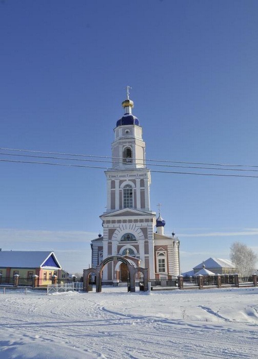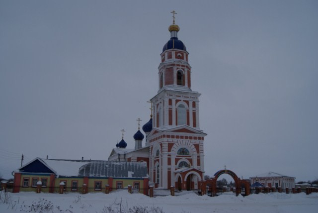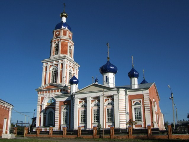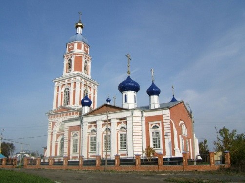В 1743 году построили первую деревянную церковь, которая сгорела в 1750 году. Вторая деревянная церковь в честь Покрова Пресвятой Богородицы с Иоанно-Предтеченским и Никольским приделами была построена в 1843 году. Возведение третьей церкви, каменной, было начато в 1908 году, но полностью не было завершено из-за начавшейся Первой мировой войны. Не построена алтарная часть храма, но храм всё-таки был задействован примерно перед революцией 1917 года.