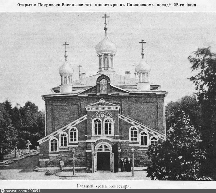История Покровско - Васильевского монастыря в городе Павловский Посад относится к середине 70-х годов XIX столетия. Благодаря своим устроителям и попечителям в лице потомственного и почетного гражданина города, крупного фабриканта и благотворителя- Якова Ивановича Лабзина и его семьи, обитель в короткий срок стала одним из красивейших монастырей Московской Епархии по церковному убранству и внутренней жизни насельниц.