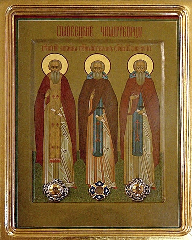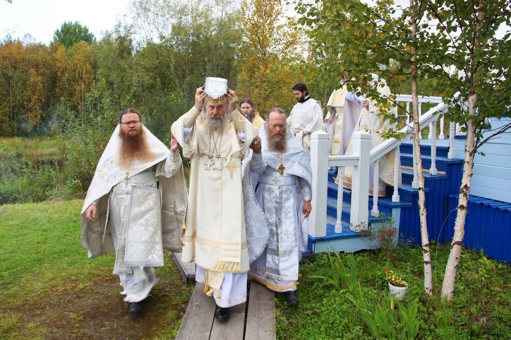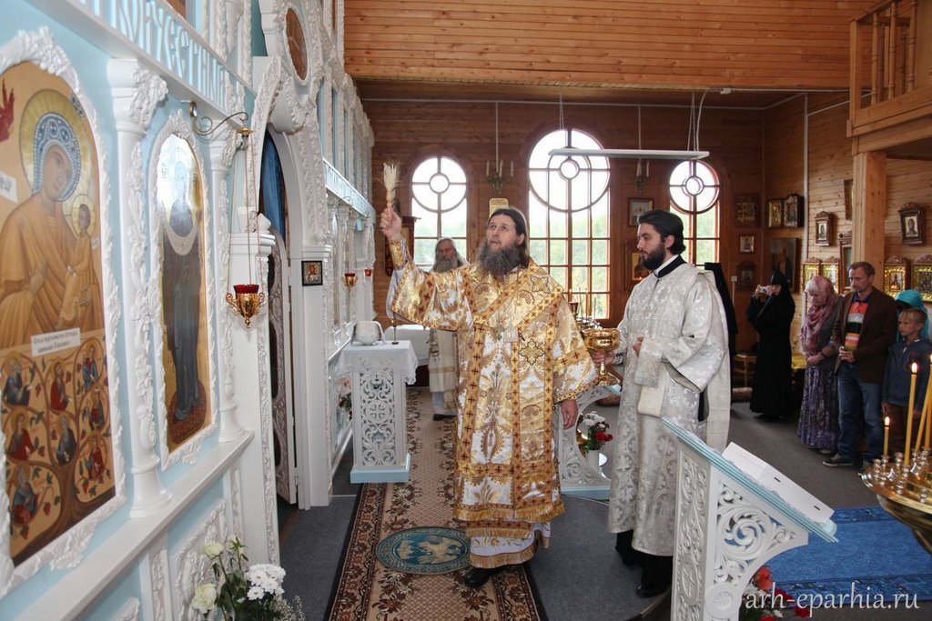 Урочище Радовое было передано администрацией Приморского района фермеру Мелешко. Силами своей семьи освоить 46 гектаров земли не удалось. Фермер решил отказаться от нее и передать Церкви. Божиим промыслом этот человек пришел на Архангельское подворье Соловецкого монастыря и рассказал, что на своей земле он строить ничего не будет, потому что в определенном месте над рощицей (в центре обители) он видел несколько раз в воздухе Пресвятую Богородицу с омофором в руках. Сказал, что у него возникает страх, когда он начинает какие-либо работы. Просил принять от него участок земли в несколько десятков гектаров. А на Архангельском подворье Соловецкого монастыря в 1995 году уже образовалась женская община. Настоятелем подворья был иеромонах Елеазар (Кондратьев).