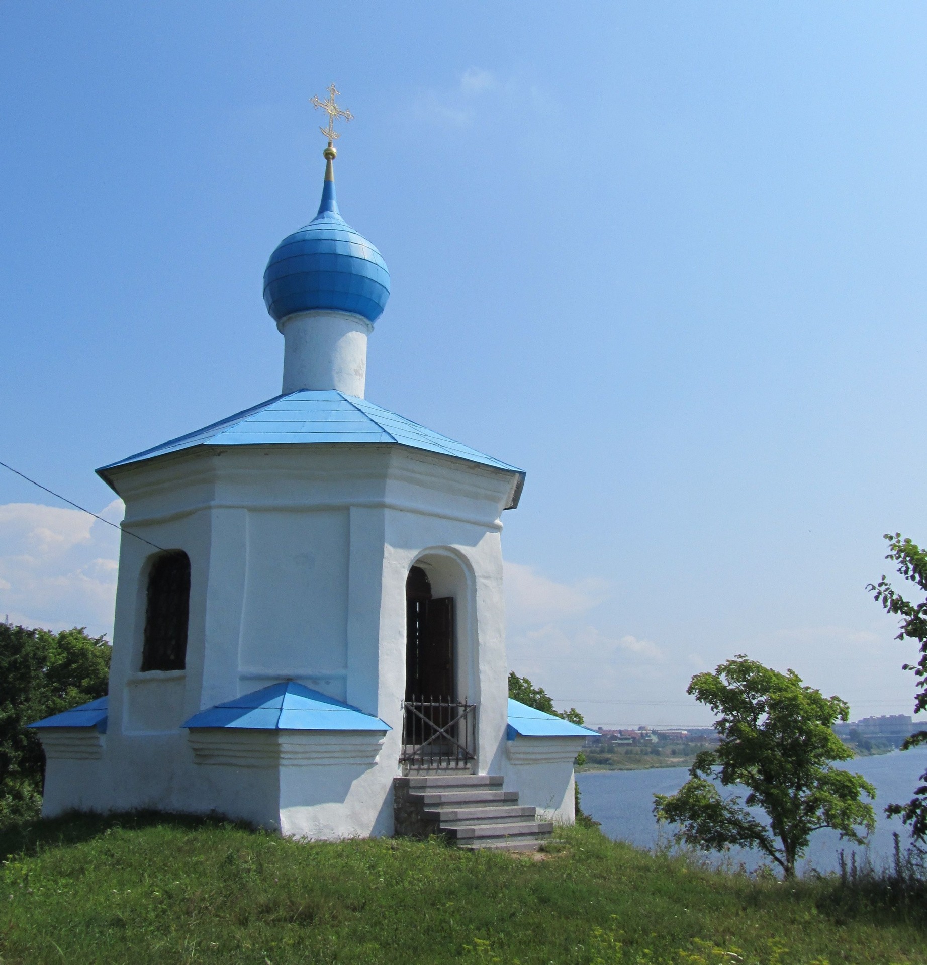 дверной проем и три широких окна. В интерьере перекрыта зонтичным сводом с распалубками. Поставлена на месте более ранней часовни. В 1913 году отсюда вывезена икона «Избранные Святые» псковского письма XV века (Параскева Пятница,Григорий Богослов, Иоанн Златоуст, Василий Великий), ныне хранящаяся в Третьяковской галерее. В течение веков часовня несколько раз реставрировалась. Последняя реставрация прошла в 2002 году по проекту архитектора В.Е. Никитина . Рядом с часовней находится захоронение всех останков, найденных за эти годы на
