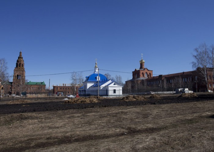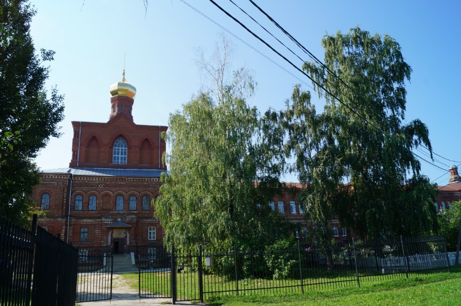 В 1882 году был заложен больничный корпус – большое трехэтажное здание для приюта больных и престарелых. В восточной части корпуса был устроен храм, составляющий с ним неразрывную связь. Назначение его – чтобы престарелые и больные, лишенные возможности двигаться, могли слышать богослужение из комнат, расположенных в соседстве с храмом. Храм был сделан в два яруса: нижний храм – на уровне 1 этажа и верхний – на уровне 2-го и 3-го этажей. Нижний храм (в честь Серафима Саровского), был предназначен для погребения в нем благотворителей обители, верхний ( в честь Сергия Радонежского) – для вседневных богослужений. С западной стороны корпуса расположилась колокольня.