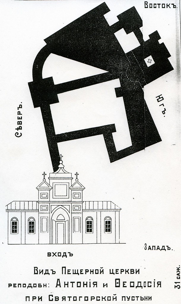 Велика была радость святогорской братии: новооткрытый храм спешили отделать и вновь освятить, причём эконом упросил отца Арсения, для большаго простора, расширить его притворами направо и налево, которые, под непосредственным его руководством и были выкопаны в земле руками иноков. Таким образом, если предположить, что храм этот в древности ископали иноки, — в новейшее время откопали, очистили и распространили его тоже исключительно иноки».
