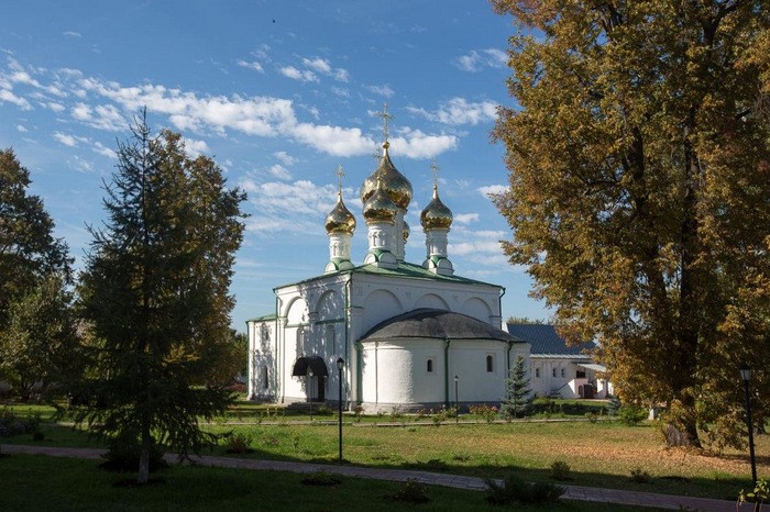 Сооружен был благоверным князем Олегом Ивановичем на месте деревянной церкви (XVI – XVII). Пятикупольный храм, для которого характерна классическая строгость форм и изящество линий.