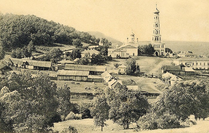 Храм во имя иконы Божией Матери был устроен на пещерах, которые в 1820-е годы выкопали подвижники и ревнители духовных подвигов, сообразовавшихся в одну общину. После официального открытия монастыря в пещерах, представляющих из себя обложенные кирпичом подземные коридоры и земляные келии, подвизались старцы. На встречу с одним из них специально приезжал из своего бузулукского имения Лев Толстой. Факт посещения пещер отображен в переписке великого писателя с супругой и в воспоминаниях его детей.