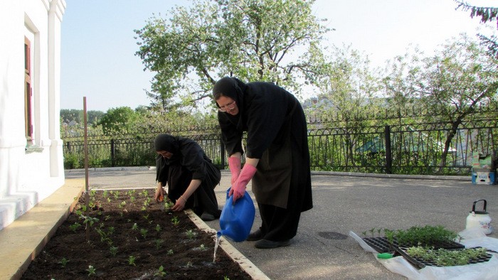 Вновь появилось монастырское кладбище, где покоются – протоиерей Иоанн Рузавин (1914-1994), бывший секретарь митраполита Варнавы и дядя игумении Сергии. Несколько насельниц монастыря. Также покоются останки людей, обнаруженные в ходе проводившихся на владимирской горке строительных работ. По свидетельствам очевидцев погребальные склепы были обнаружены в районе современных монастырских ворот, а также несколько метров севернее малой часовни.Богослужение в монастыре