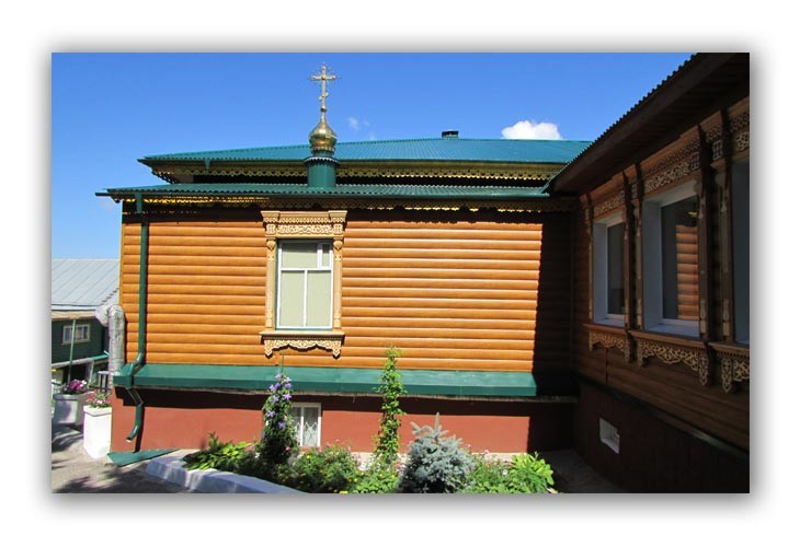 Главный придел был назван в честь Владимирской Божией Матери, правый - в честь преп. Арсения Великого. Левый придел был освящен в 1862г. уже Высокопреосвященнейшим Афанасием, Архиепископом Казанским во имя Сретения Господня. Заведовала общиной монахиня Арсения. При общине в 1900г. открылась церковно-приходская школа для девочек-сирот.
