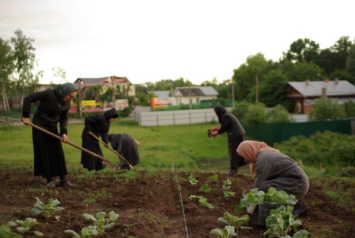 До 1917 г. здесь были построены несколько деревянных корпусов для монашествующих, а также различные хозяйственные постройки: просфорная, снабжавшая почти все городские церкви просфорами, живописная и чеканная, золотошвейная, где монахини шили церковные облачения. Были построены баня, скотный двор. При общине была устроена новая школа со специальной квартирой для учительницы. Ниже холма, близ реки был выкопан пруд для разведения рыбы, а на месте старых берез и ив в 1905 г. разбит плодовый сад. Примечательно, что лучшие городские сады богатейших горожан Астраханцева, Ефремова, Кушева, Эннатского вместе взятые, не могли сравниться ни по площади, ни по количеству фруктовых деревьев с садом общины. На участке земли в 1 десятину 450 кв. саженей произрастало 250 фруктовых деревьев, среди которых особое место занимали анис, антоновка, боровинка скороспелка и др. Интересно, что некоторые сорта плодовых деревьев ни у кого в Чебоксарах больше не выращивались.