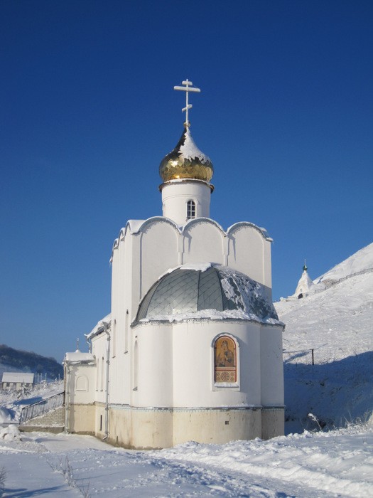 Далее на запад по склону расположен храм преподобного Серафима Саровского. Он был заложен в 1903 году, но завершить его строительство удалось только в наши дни.