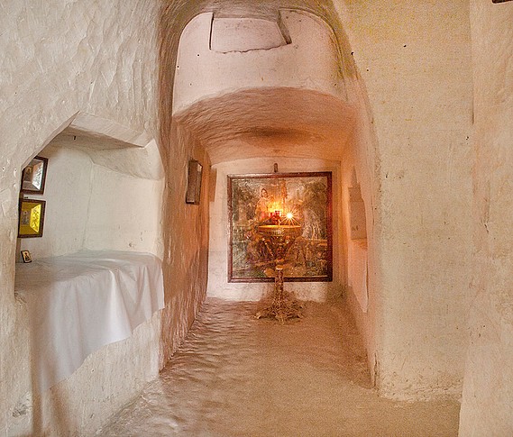 Кроме храмов в меловой горе расположено несколько небольших пещер, в которых подвизались монахи-затворники. Одна из них, наиболее протяженная, носит название «Пещера покаяния». По преданию в ней священник принимал исповедь.