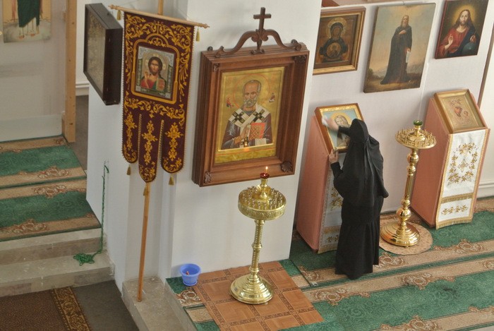 В 90-е годы по просьбам жителей в деревянном доме, принадлежавшем ранее монастырскому священнику отцу Георгию Маккавееву, был создан молебный дом. В воскресные и праздничные дни совершались службы, женщины собирались на совместную молитву. При молебном доме работали иконная лавка и библиотека духовной литературы.