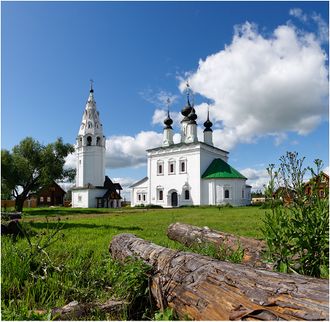 единственная в Суздале шатровая колокольня, стены которой почти лишены