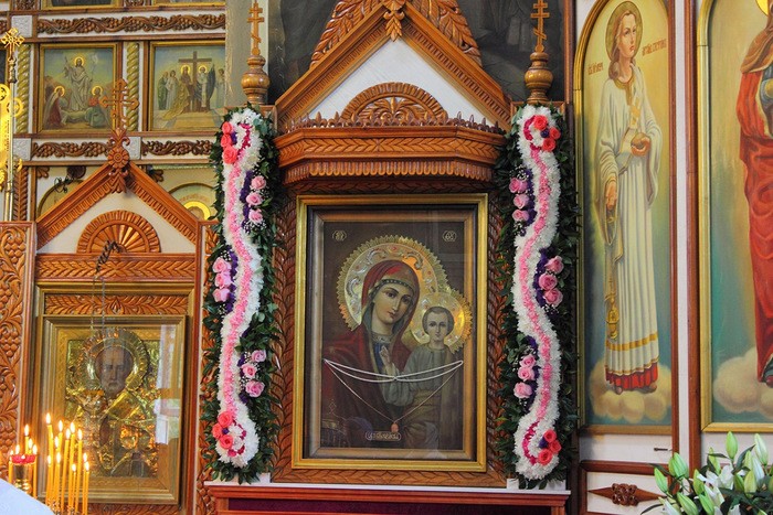 Церковь во имя иконы Божией Матери «Живоносный Источник» сооружена на средства благотворителей при игуменье Магдалине в 1879 году. В 1903 году перестроена из однопрестольной в трехпрестольную и стала именоваться Казанской. Главный престол освятили в честь Казанской иконы Божией Матери, северный - в честь Святителя Николая, южный – в честь иконы Богородицы «Живоносный Источник».