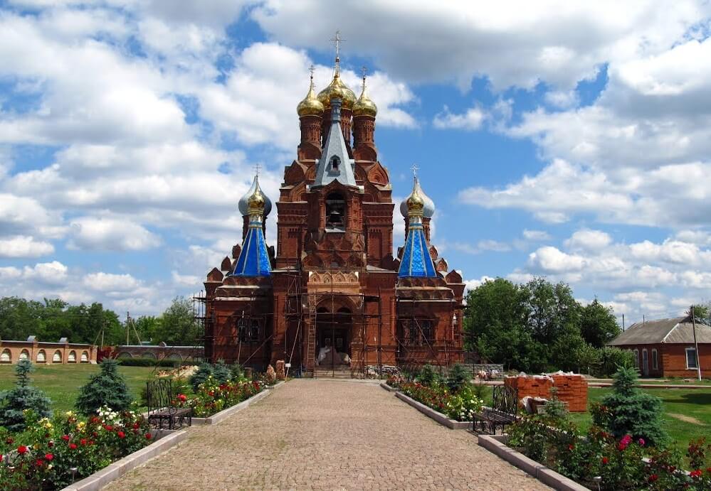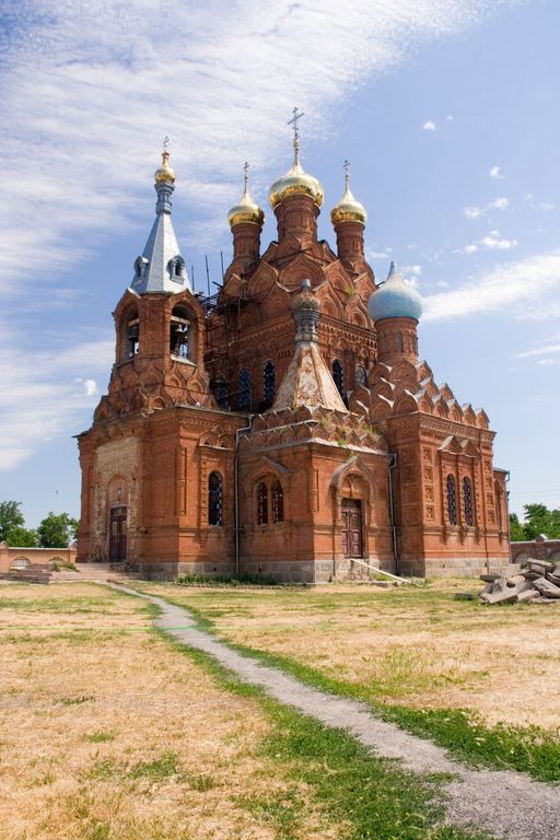 Храм получился величественным, высотой в 40 метров. 12 голубых башен, на которых красовались кресты с вмонтированными зеркалами, отражая солнечные лучи и сияя далеко вокруг, стали чудесным украшением края. Разные по высоте барабаны поддерживали одинаковые купола с металлическими крестами, инкрустированными зеркалом. Декоративные шатровые крыши над притворами подчеркивали русскость архитектуры, добавляли воздуха тяжелому сооружению. 12 церковных колоколов, самый большой из которых весил 85 пудов 18 фунтов, оповещали далеко вокруг о появлении настоящего чуда. Современники часто сравнивают его с собором Василия блаженного. Царские врата и алтарь размером в 52 кв.м. изготовили из мейсеновского фаянса.