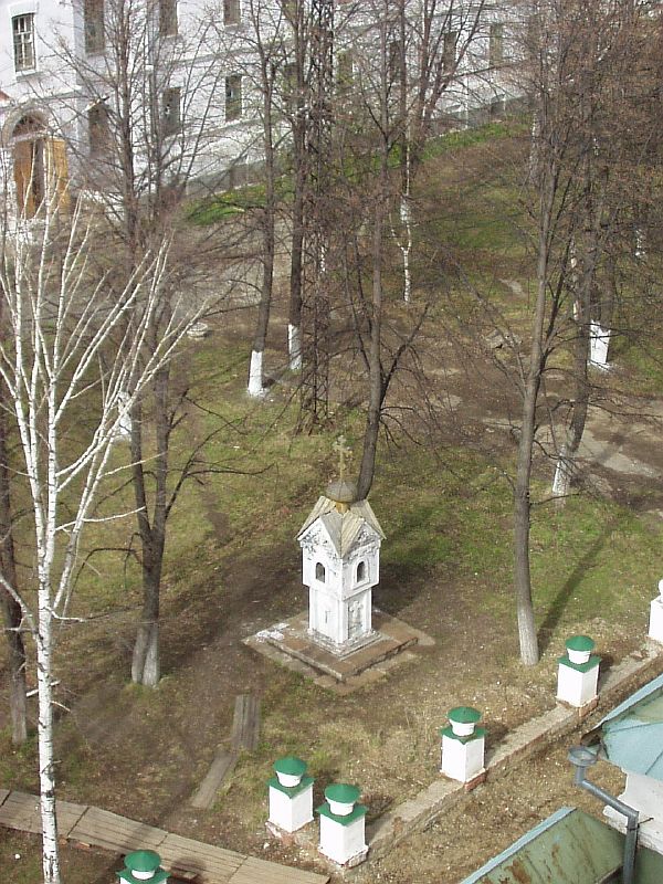 За главным клиросом главного Преображенского храма, под полом, в особо устроенном склепе, покоится тело Высокопреосвященнейшего Неофита, архиепископа Пермского и Верхотурского. В 1869 г. над могилою архиепископа Неофита устроена железная с четырьмя чугунными столбами решетка, чугунная доска с надписью о времени и месте кончины архипастыря. В 1877 г. в углублении стены устроен небольшой киот, в котором вставлены по завещанию Неофита его келейные иконы. Под левым клиросом погребен настоятель сего монастыря архимандрит Гавриил.