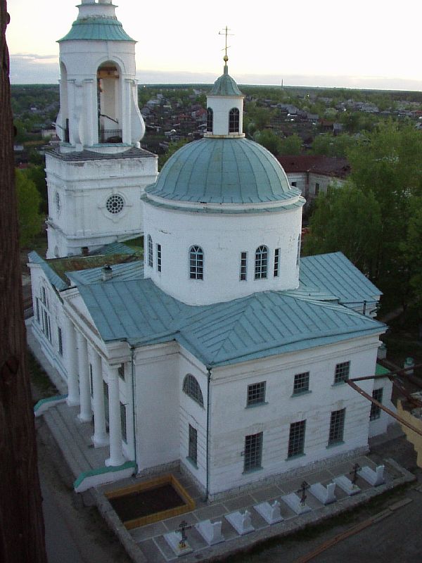 От Никольской церкви в недальнем расстоянии к северу находится каменная Преображенская церковь. Николаевский храм в виду увеличения братии и приходящих богомольцев оказался маловместительным. В силу этого настоятель монастыря архимандрит Афанасий с братиею ходатайствовал перед преосвященным Иустином, епископом Пермским и Екатеринбургским о разрешении постройки второго каменного храма. Пермская духовная консистория указом от 3 августа 1821 г. разрешила построить большой каменный храм во имя Преображения Господня с двумя приделами: в честь Благовещения Пресвятой Богородицы и Архистратига Божия Михаила с колокольнею. 28 августа 1821 г. церковь была заложена. 30 августа 1834 г. главный Преображенский храм был освящен Высокопреосвященнейшим Аркадием, архиепископом Пермским и Верхотурским, а 25 июля 1837 г. им же освящены придельные храмы.