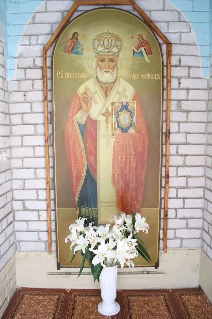 Свято-Никольский храм. Большая часть служб проходит в нем. Он разделен на 3 придела. Центральный придел- в честь Святителя Николая (зимнего, потому что день празднования 19 декабря). Слева от него- придел в честь иконы Божией Матери «Взыскание погибших» (день празднования- 18 февраля). Справа- придел в честь пророка Божьего Илии (день празднования- 2 августа).