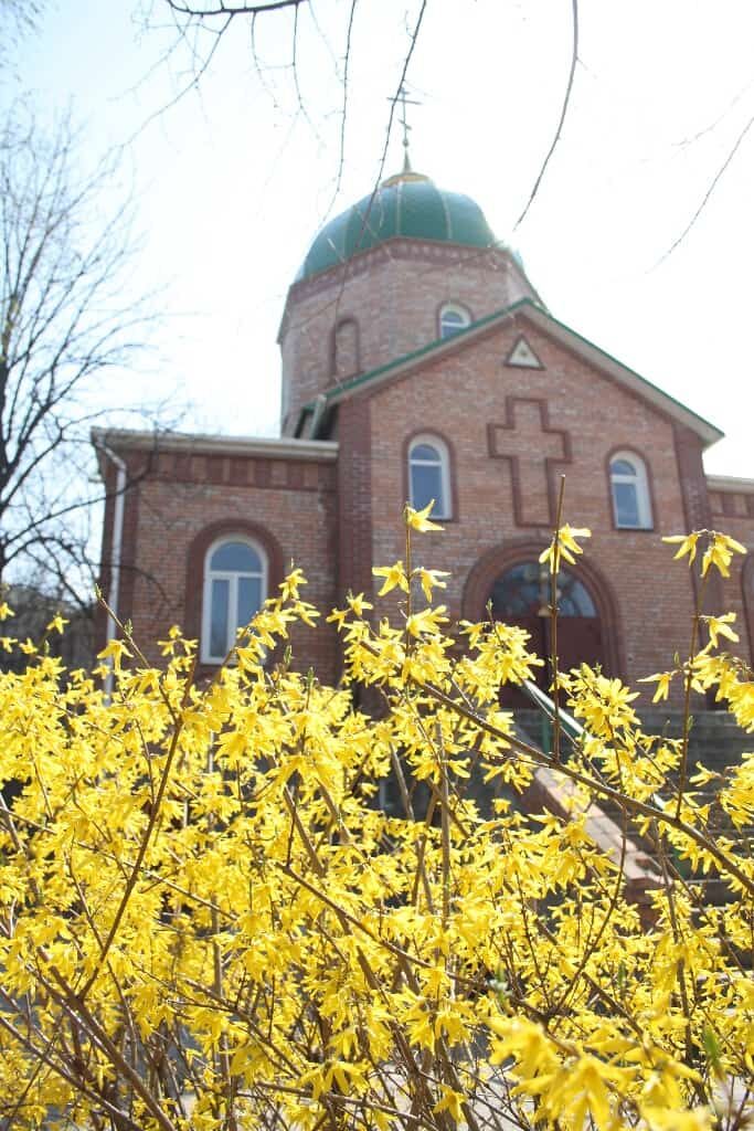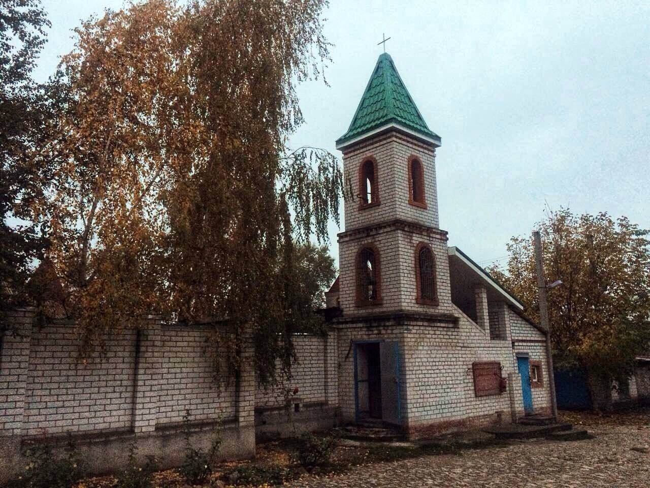 В 1891 году две семьи меннонитов пожертвовали свои участки земли под строительство церкви. И в этом же году началось строительство. 22 мая 1893 года храм был освящён. На входных вратах храма была надпись: «В память 17 октября 1888 года» (день спасения Царской семьи ). Церковь стояла на месте будущего трамвайного кольца возле железнодорожного вокзала «Запорожье I». 1930 году по генеральному плану реконструкции города для прокладки трамвайной линии к вокзалу Запорожье I церковь разрушили, разобрали по кирпичику, а в 1932 г. все сравнялось с землей.