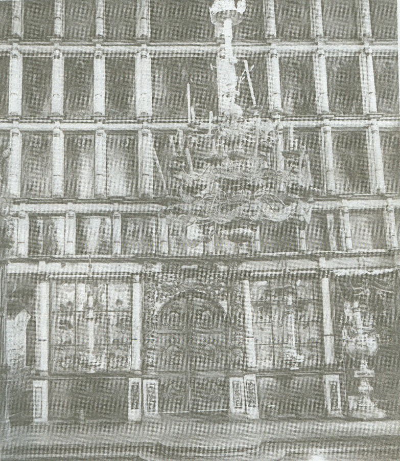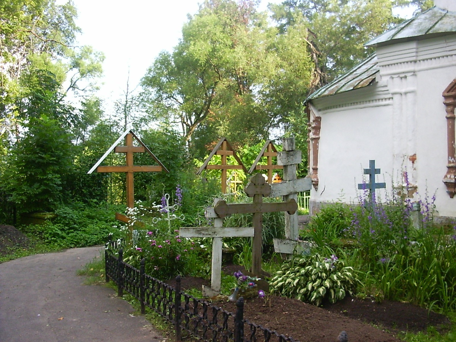 Как свидетельствует В.И.Чернопятов, автор издания «Дворянское сословие Тульской губернии» (Т. VII. «Некрополь». 1912. С. 146), Великий князь Смоленский Георгий (Юрий) Святославич скончался в 1408 году 14 сентября и погребен у правого клироса нижнего храма. В начале XX века над его могилой еще сохранялась металлическая доска, установленная по соизволению преосвященного Дамаскина, Епископа Тульского и Белевского. Надпись на ней содержала выписку из 26 главы «Книги степенной царского родословия», которая гласила, что события эти происходили во время правления благоверного великого князя Московского Василия Димитриевича, сына Димитрия Донского. «В граде Смоленске господствовал тогда великий князь Юрий Святославович. Сей великий князь Смоленский, видя нестроение братий своих и междоусобную брань, оставил княжение свое и ушел в Рязань к тестю своему, великому князю Олегу Ивановичу Рязанскому. В отсутствии его Витовт, князь Литовский, пленил Смоленск, и супругу его с детьми повелел отвести в Литву. Услышав о таком злоключении града, жены и детей своих, в горести души князь Юрий предался на служение великому князю Московскому Василию, который сделал его наместником града Торжка».