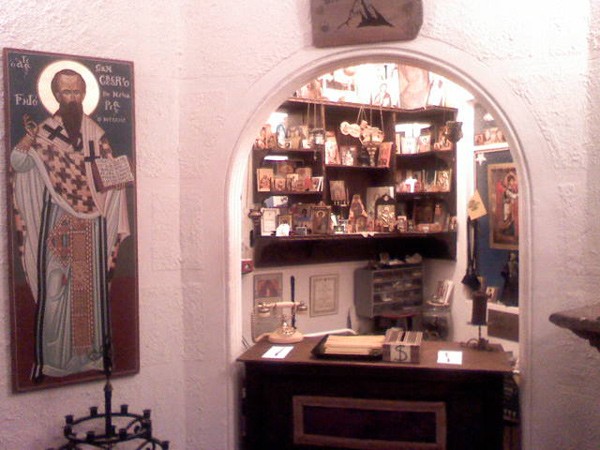 Имея высшее образование в области музеографии и реставрации исторических зданий, отцу Нектарию удалось восстановить старый дом колониального калифорнийского стиля, расположенный в самом центре города, устроив в нем церковь, трапезную и монастырские кельи. Здание не находится в собственности и арендуется за довольно высокую плату из-за месторасположения.
