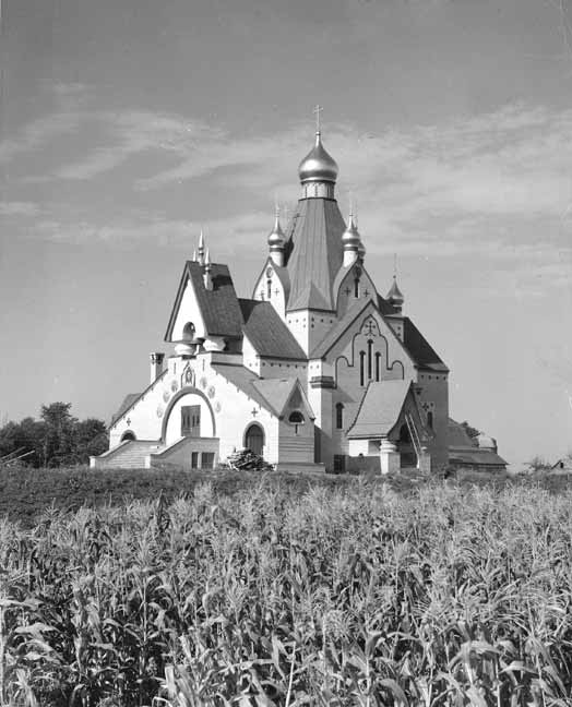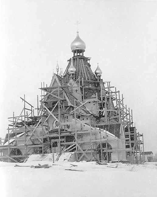 В 1945 вскоре после окончания Второй Мировой войны было принято решение о строительстве большого каменного собора в честь Живоначальной Троицы. Председателем строительного комитета стал профессор Н. Н. Александров, впоследствии многолетний декан Свято-Троицкой семинарии, почетным председателем – архиепископ Виталий (Максименко), помощником председателя – игумен Пантелеимон (Нижник). В строительный комитет также вошли авиаконструктор И. И. Сикорский, Б. В. Сергиевский и другие видные русские общественные деятели. В основание храма были положены частицы мощей сербских святых Ангелины, Стефана Дечанского и архиепископа Арсения Сербского. В 1946 началось строительство собора в стиле шатровых храмов Северной Руси по проекту архитектора Романа Николаевича Верховского. Были наняты инженеры для руководства постройкой собора, а братия делала подсобную работу.