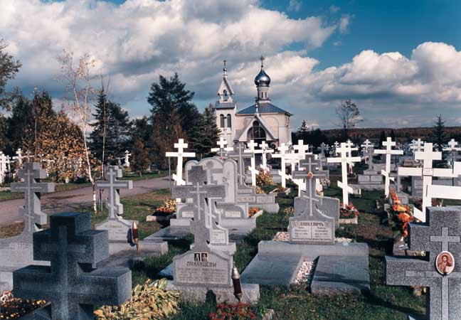 Расположенное в полумиле к северу от монастыря кладбище было основано в 1936 и делится на две части: «старое» и через дорогу от него обширное «новое» кладбище с церковью в честь Успения Пресвятой Богородицы. На этих участках преобладают захоронения мирян, монашествующих и белого духовенства Русской Православной Церкви за границей со всей Америки. На монастырском кладбище похоронены: богословы и церковные историки – протопресвитер Михаил (Помазанский), архимандрит Константин (Зайцев), профессора Иван Михайлович Андреевский и Николай Дмитриевич Тальберг, убиенный хранитель Иверской Мироточивой иконы брат Иосиф, многие другие священнослужители и преподаватели Свято-Троицкой Духовной семинарии.