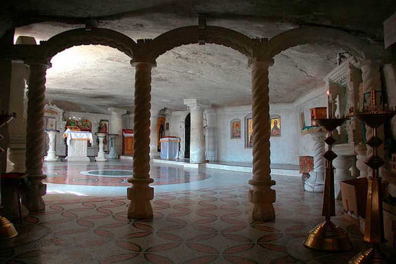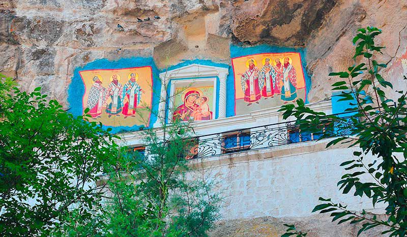 К началу XX в. здесь существовало уже пять храмов. Была значительно расширена древняя пещерная церковь в честь Успения Богоматери. Ниже ее находился небольшой пещерный храм во имя св. апостола и евангелиста Марка, построенный на пожертвования симферопольского чиновника Айвазова. Внизу, под скальным навесом, на средства Е. Берковой была построена церковь во имя св. равноапостольных царей Константина и Елены. На противоположной стороне ущелья воздвигли храм Георгия Победоносца. Пятый храм, в честь Иннокентия Иркутского, построили в 1896 г. на средней площадке скита в память об архиепископе Херсонском и Таврическом Иннокентии (Борисове), которому принадлежала инициатива воссоздания этой святыни.