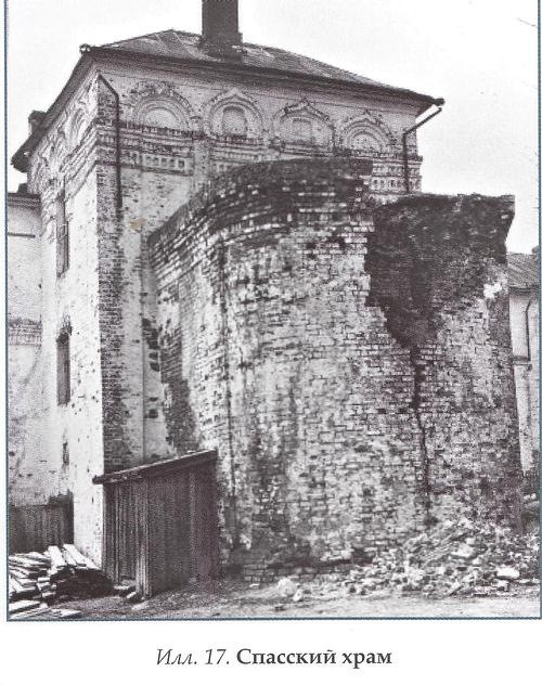 В XV–XVI веках ее церкви и другие строения были деревянными. Они быстро ветшали и на протяжении столетий многократно перестраивались. В годы польско-литовской интервенции начала XVII века все окрестные селения сильно пострадали. Приходская церковь Воскресения Господня села Небылого тогда «запустела», а впоследствии бесследно исчезла. В то время Космин монастырь, вероятно, также был разорен. Каменное строительство началось в монастыре только со второй половины XVII столетия. В период строительства нового соборного храма Успения (взамен ветхого деревянного) в монастыре исчезла деревянная церковь во имя Великомученицы Параскевы Пятницы, упоминаемая в описях первой половины XVII века. В этой церкви, согласно сведениям из описей 1619 и 1635 годов, почивали под спудом святые мощи основателя обители; в самой же церкви находилась рака чудотворца Космы, накрытая его образом. Можно предположить, что новая церковь была возведена на месте двух выше названных деревянных, то есть Успенской и Параскевы Пятницы. Трудами игумена Митрофана (будущего святителя Воронежского) был построен трапезный каменный храм во имя Спаса Нерукотворного Его Образа – взамен ветхого деревянного, игуменские каменные кельи, полностью обновлено иконное убранство обители. Начатое в середине XVII века благодаря царским пожертвованиям и через несколько лет продолженное игуменом Митрофаном на собранные им средства строительство каменных храмов в обители завершилось в конце столетия. В 1690 году была возведена надвратная церковь во имя Святителя Николая Чудотворца, оформившая главный северный вход в монастырь – со стороны села. Позднее Никольская церковь была соединена с корпусом братских келий и, благодаря этому, с трапезным храмом Нерукотворного Образа Спаса. Так сложился цельный, удобный для молитвы и труда монастырский комплекс, обнесенный сначала деревянной, а затем кирпичной оградой. Строительные работы возобновились здесь только в XIX веке. В связи с прославлением святителя Митрофана Воронежского в лике святых в 1832 году, был устроен придел его имени над трапезной храма Нерукотворного Образа. В южной части главного алтаря Успенской церкви возобновили придел во имя основателя монастыря – Преподобного Космы Яхренского. Над корпусом игуменских и братских келий надстроили второй этаж; Никольский надвратный храм был вновь перестроен.