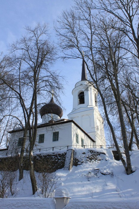 Свято-Успенский Святогорский монастырь был основан по повелению царя Ивана IV в 1569 году после нескольких явлений чудотворных икон Божией Матери вороничскому пастуху Тимофею сначала у речки Луговки, а затем на Синичьей горе, получившей название Святой. Об этом событии рассказывает монастырская «Повесть о явлении чудотворных икон Пресвятыя Владычицы нашей Богородицы и Приснодевы Марии во области града Пскова на Синичьей горе, иже ныне зовома Святая Гора». На основании этой летописной повести псковский епископ Евгений Болховитинов написал книгу «Описание Святогорского монастыря. Обитель и издревле входил в ряд самых почитаемых на Руси. Среди многих даров царей и вельмож, хранившихся в монастыре, были пожалованный Иваном Грозным 15-пудовый колокол, прозванный в народе Горюном, и Евангелие - дар царя Михаила Федоровича. Сегодня можно увидеть осколки колокола, заказанного игуменом Иннокентием, изготовленного на заводе Тюленева в Москве в 1753 г.