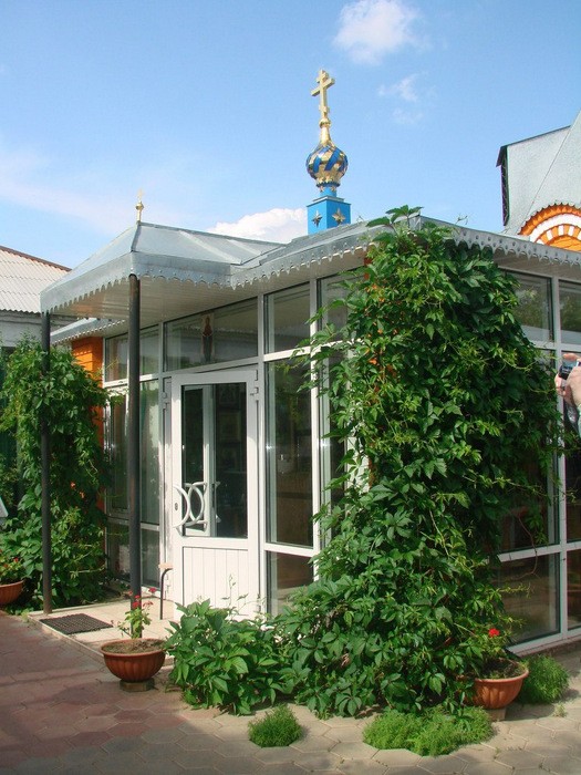 В здании Трапезной устроен храм Успения Пресвятой Богородицы и трапезная для сестер