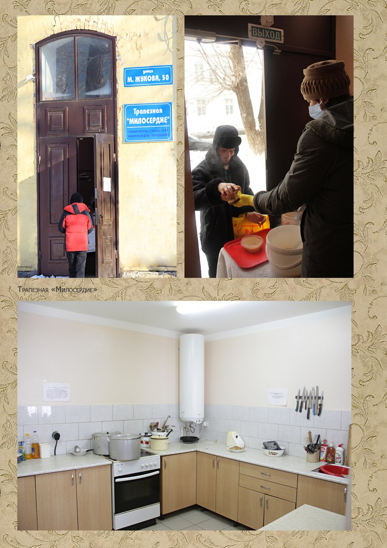 Построена звонница С 2010 года по улице Маршала Жукова, дом 50, ежедневно получают благотворительные обеды 60 бездомных человек