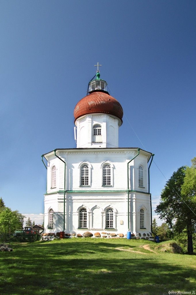 Интересной особенностью этого храма является то, что на главе, венчающей храм, устроен маяк. С 15 августа по 15 ноября он аккуратно зажигался иноками скита в ночное время, указывая путь рыбакам и мореплавателям, которым маяк был виден почти за 100 верст. Маяк работает и поныне.